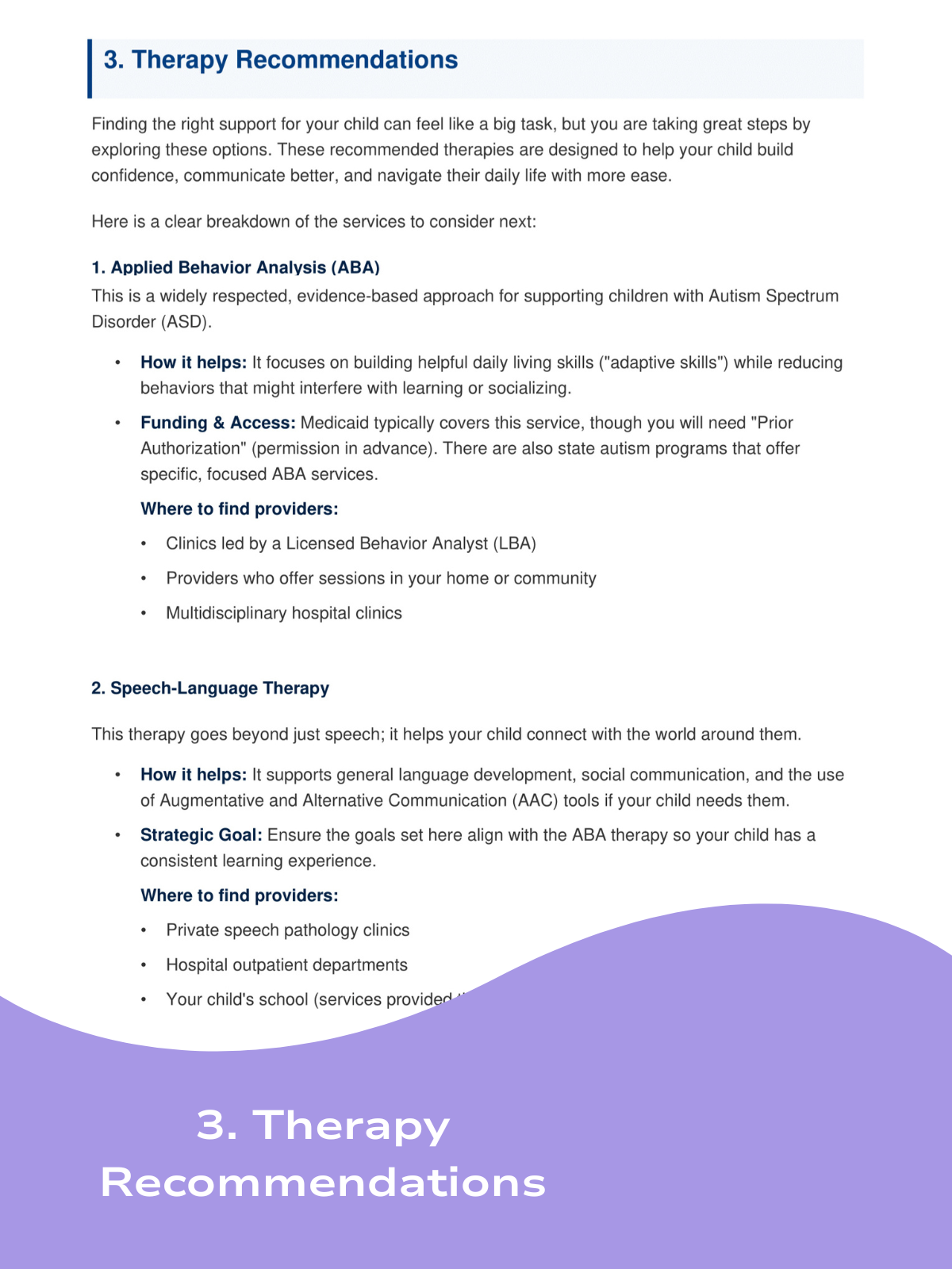 This is a real example of a personalized CareRoute Plan. Each plan is created for your child’s state, age, and needs, and organizes every major support system into one clear roadmap.